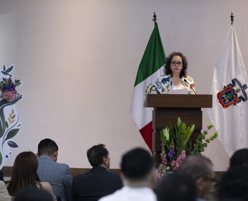 Durante su cuarto Informe de actividades, la Rectora del plantel, doctora Graciela Gudiño Cabrera, resaltó que este campus se ha fortalecido con la modernización de espacios, como el arco norte de ingreso y una glorieta para facilitar el desplazamiento de peatones y vehículos.