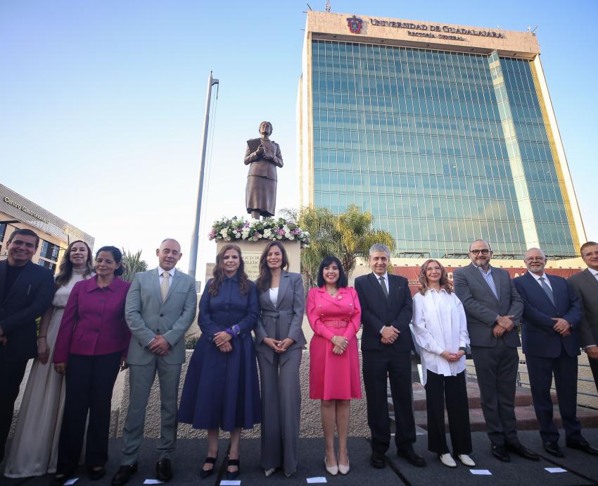 “En el primer centenario de la Refundación develamos esta estatua de bronce de la doctora en un acto de justicia, memoria y resistencia al olvido y como reconocimiento a su legado y contribución a la cultura y educación del Estado de Jalisco”, precisó.